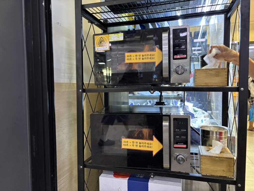 レジで購入したら、こちらの電子レンジでセルフで温めます。