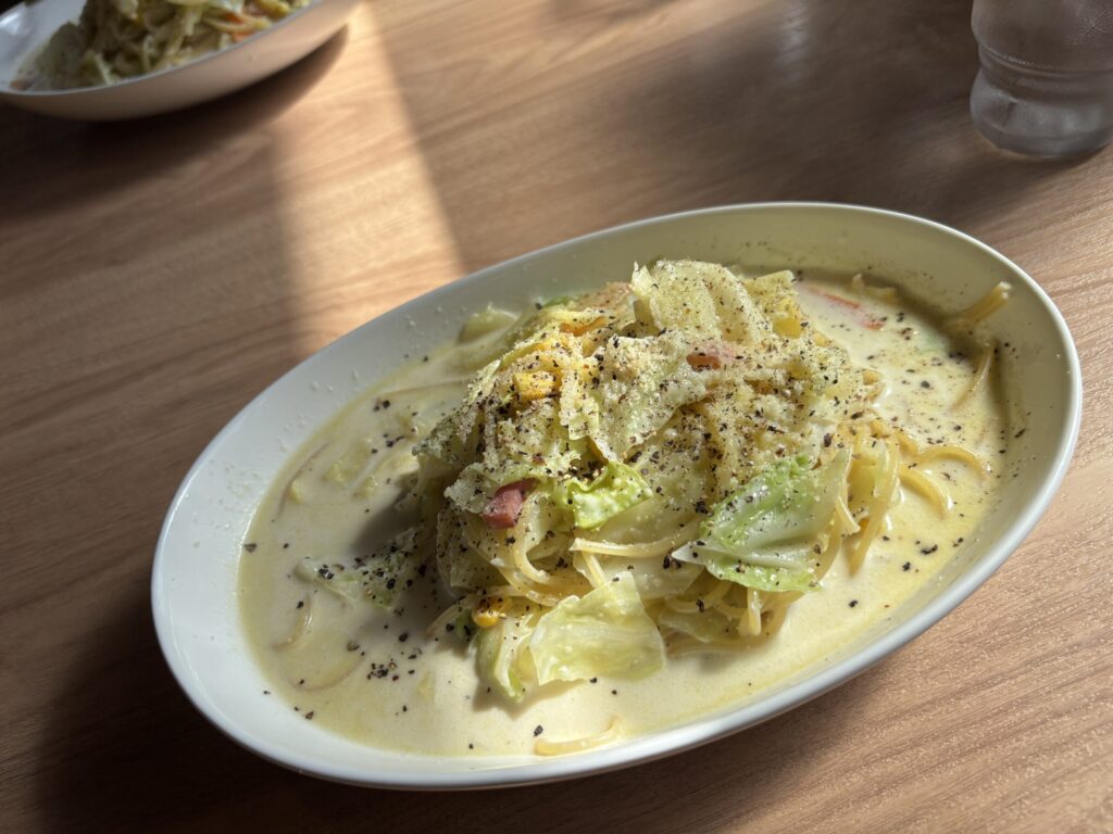 肝心の味ですが、カルボナーラっぽさにちゃんぽんっぽいコクが加わり、という表現がいいのか