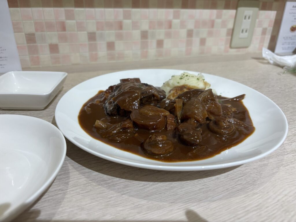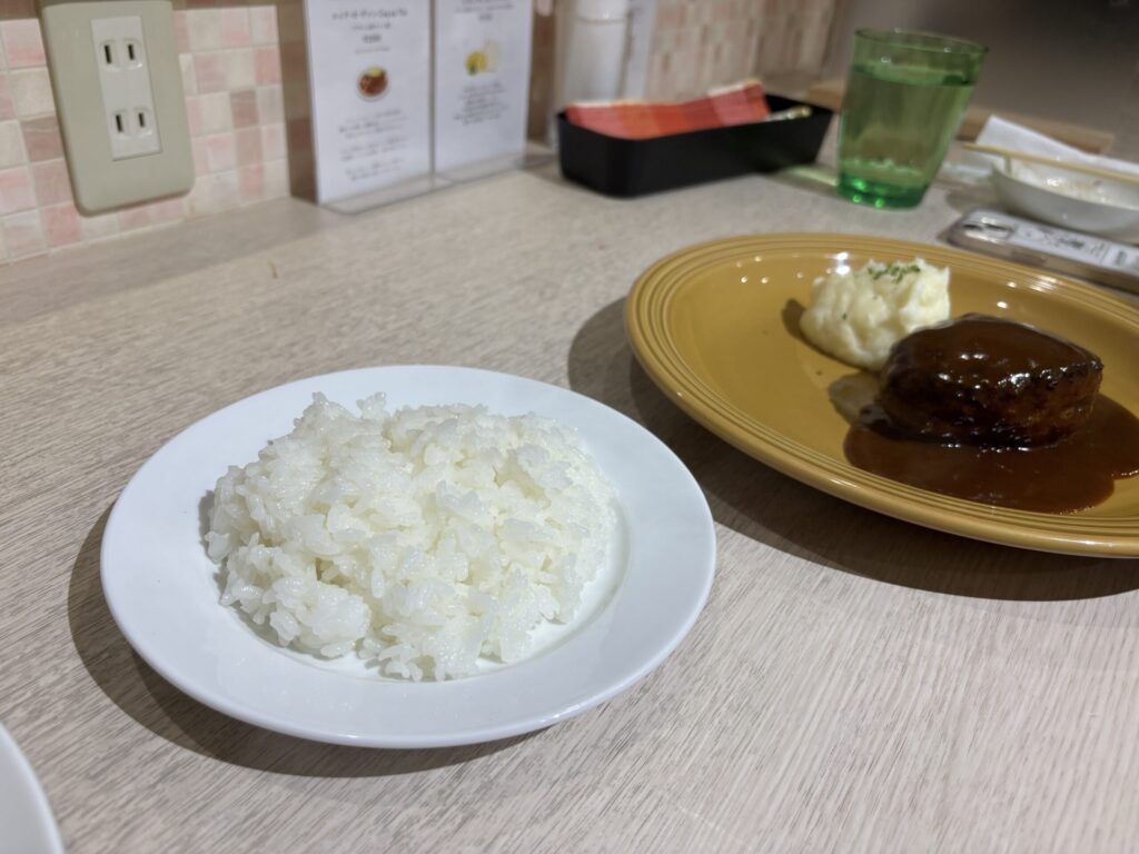 温度なのか混ぜ方なのか材料の配分なのかわかりませんけど、長年の研究の蓄積を感じさせるハンバーグとデミグラスソースのコラボレーション。