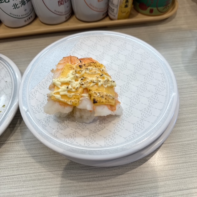 回転寿司では無難なあぶり海老マヨ 110円