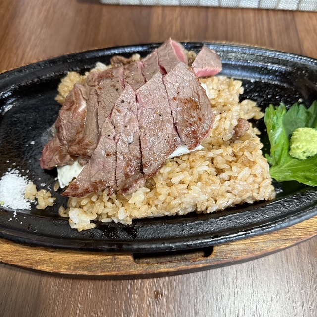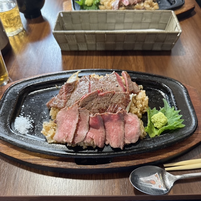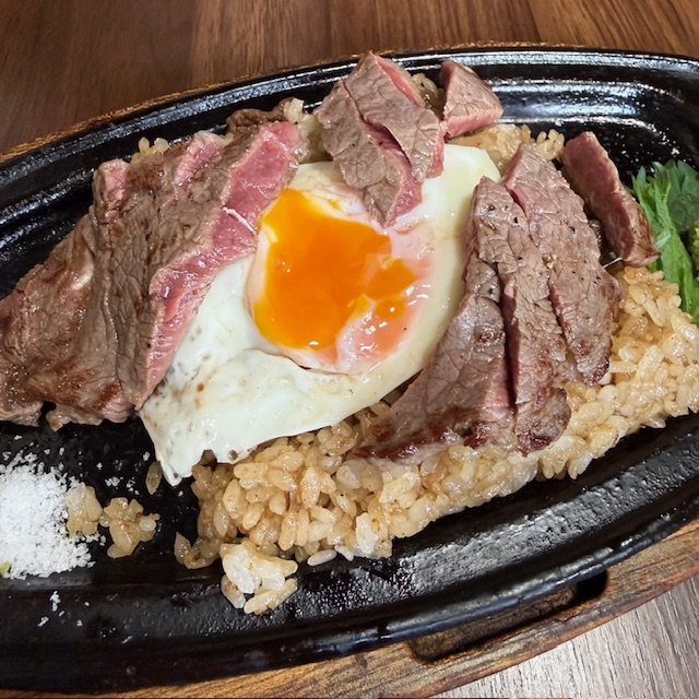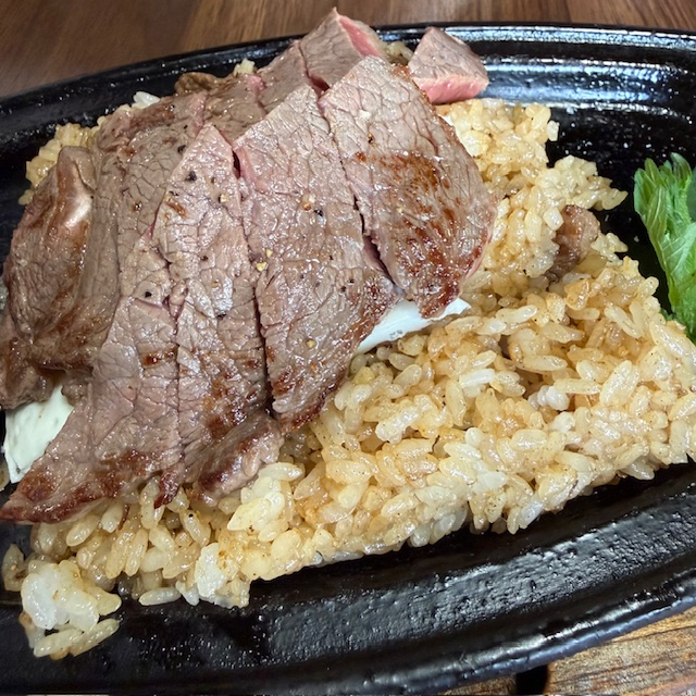 どれも美味しそうだなぁ。料理提供は少し時間がかかりました。ガーリックライスを鉄板で炒めて作るのに時間がかかっているようです。お肉を焼くのはそんなに時間かかっていませんね。