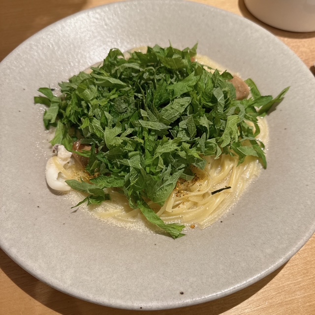 イカも入って、もちもち触感のパスタ。途中で違う味のパスタも食べたくなりました。美味しくないんじゃなくて他のも食べてみたくなりました。大葉沢山で美味しかった。午後からの仕事へ向かいます。友人にパスタの写真送ったら、次週大阪出張の折りにこのお店で同じ大葉パスタを食べたようです。