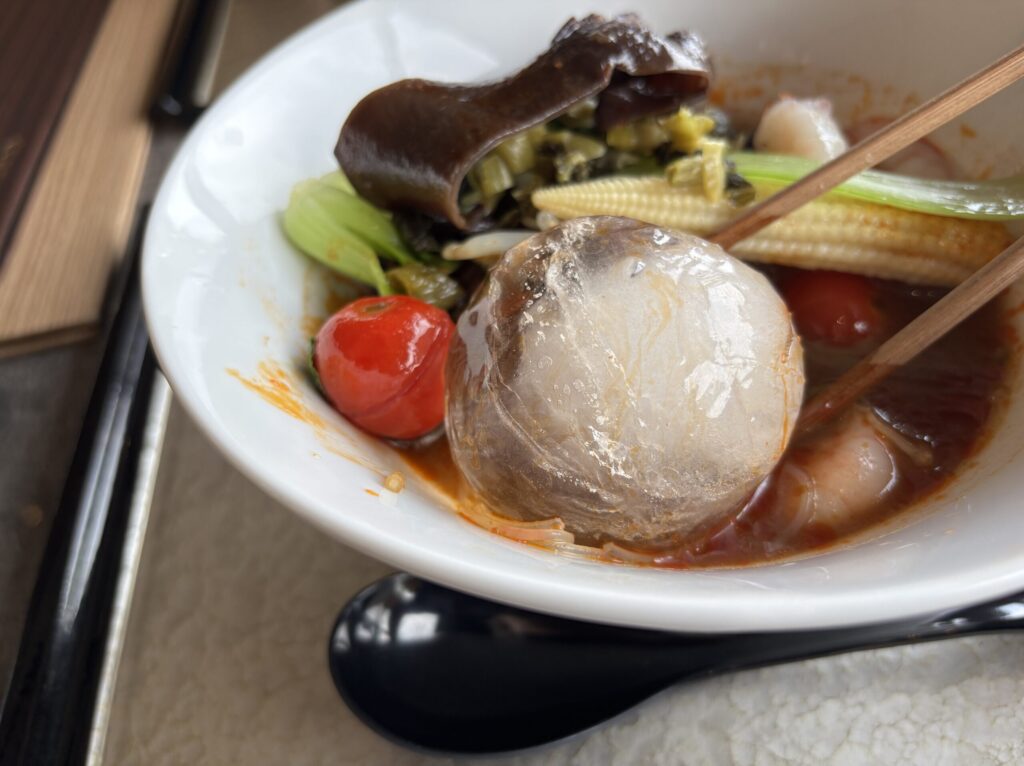 アツアツの麻辣湯は、ビュッフェ形式でトッピングを選び、麺やスープ、辛さなどを選べるスタイルなのですが、冷やし麻辣湯は、麺、スープなどは固定。