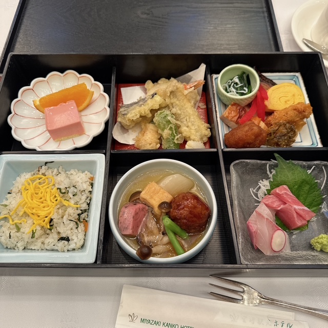 宮崎観光ホテルで会議、会議ランチのお弁当。おかずが多いランチです。会議の後、また長いフォーラムがあり懇親会は立食パーティ。宮崎の名物などを頂いてからパーティ後の二次会は熊本の人たちと予約してあったニシタチの居酒屋へ。