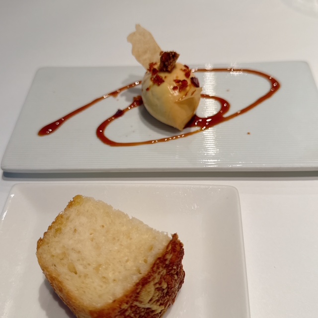 フォアグラのフラン マルサラソース 自家製チーズのフォカッチャ