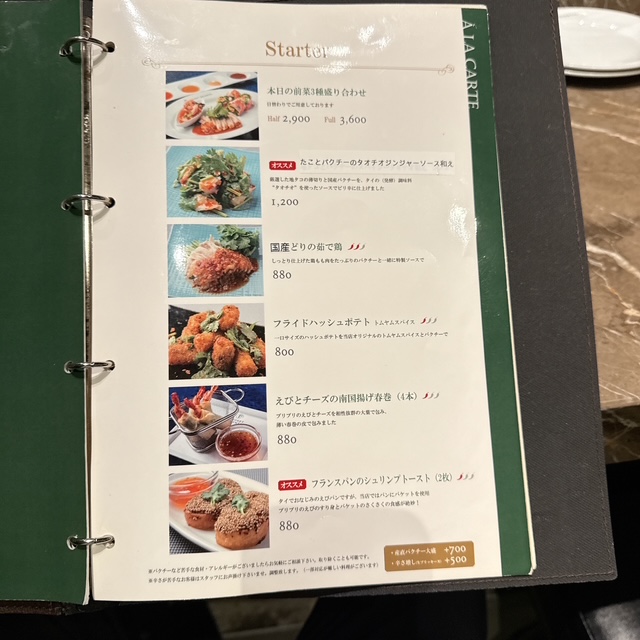 コース料理もありますが、今日はアラカルトで(一人だし)