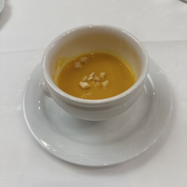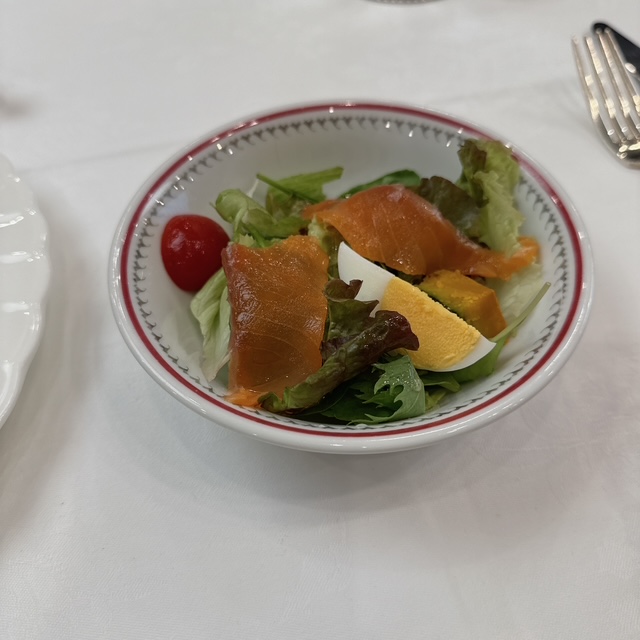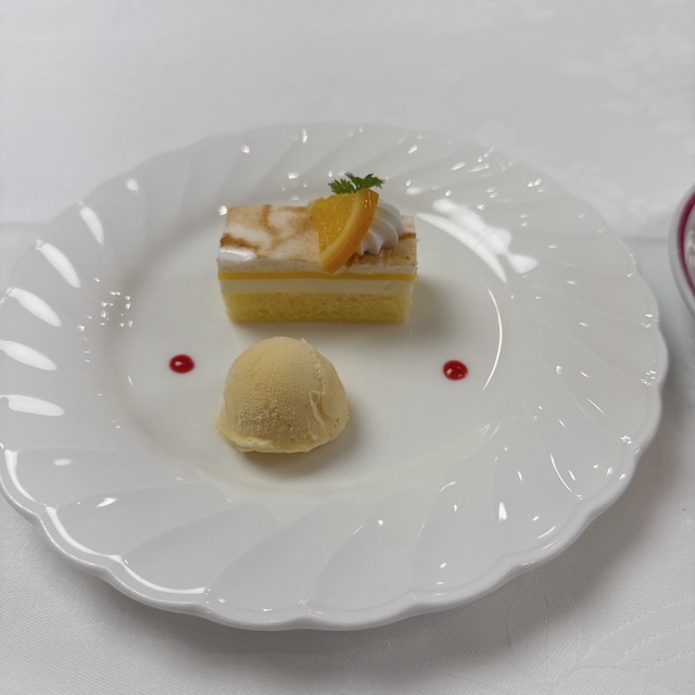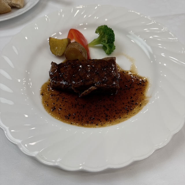 昼はホテルキャッスルで会議があり、その後ランチとなりました。最近はお弁当ではなくて洋食のコース仕立てです。私は普通にお弁当でもよいのですが。
