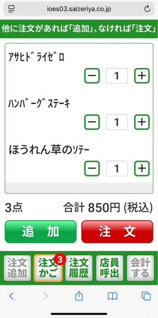 紙の注文からモバイルオーダーに変わっていました。これくらいで十分なので。しかも安いです。850円。