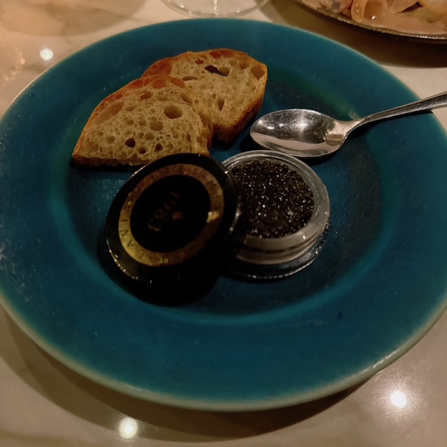 宮崎県産キャビア 1983 パエリ6g 3190円。 バゲットは通常4枚ですが2枚に