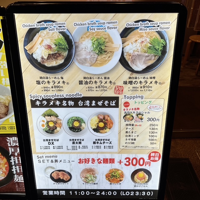 麺屋キラメキ。ラーメンで青い看板とは珍しい。食品は青を避けるのですが。酔ったあとのラーメンほど魅力的なものはないです