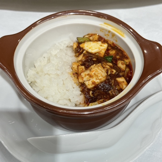 定番の本格四川マーボー丼、それに古典式杏仁豆腐