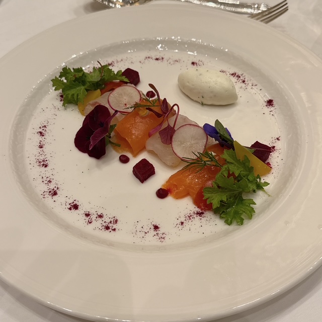 天草産真鯛のマリネとサーモントラウトのフュメ イクラ