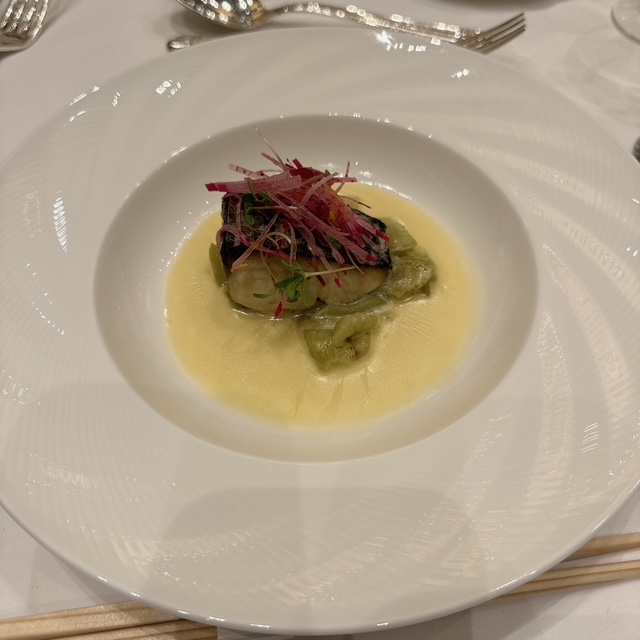 サワラのポワレと熊本県産茄子のロティ ソースマリニエール 柚子風味