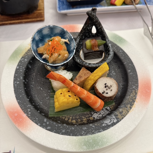 和食のコース料理。私は今日はゆっくり食べている余裕はないのですが、写真は撮っておきました。