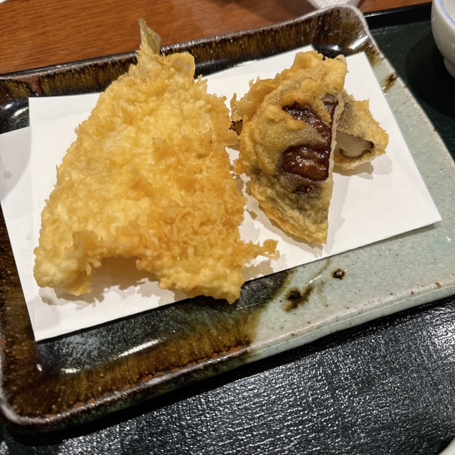 魚ものも食べたくなったので、追加オーダー。追加は意外に高くキスは1100円、一つで。椎茸海老詰めが660円。二つで普通に天丼食べられるお店ありそう。