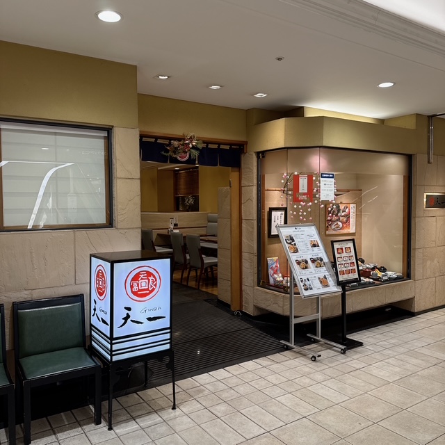正月3日の日に鶴屋7階の天一へ。夜です。天ぷらも食べたくなります。カウンター席が一杯なのでテーブル席。