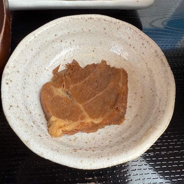 三枚肉は少し温めてからいただきます。