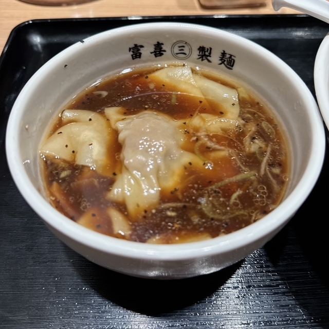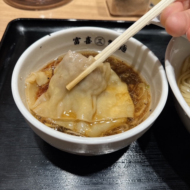 醤油ベースのつけダレ。ワンタンも結構多め