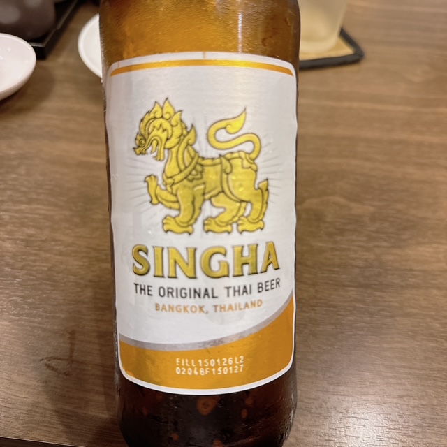 タイといえば SINGHA(シンハー)ビール。瓶で頼んだ方が外れがないのは万国共通か