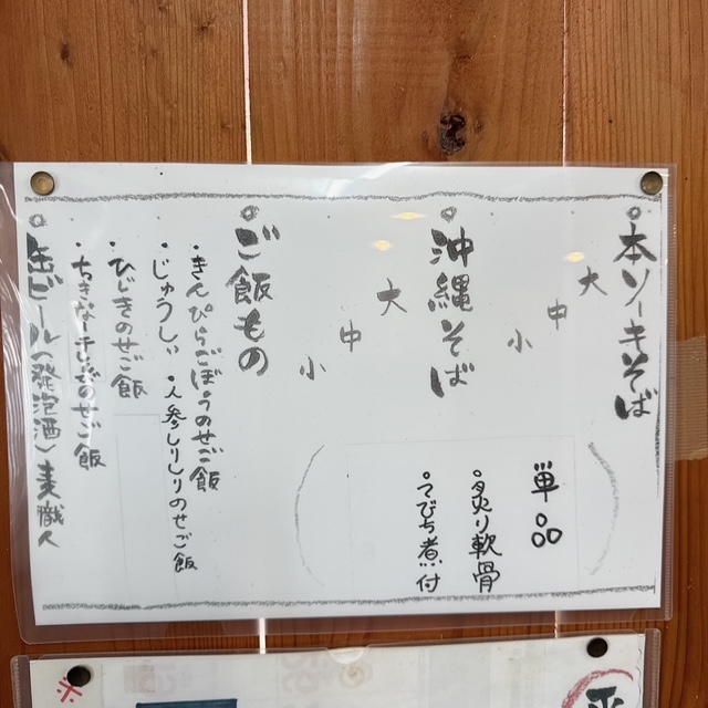 沖縄そば(中) 720円、本そーきそば(中)900円、じゅうしい 200円