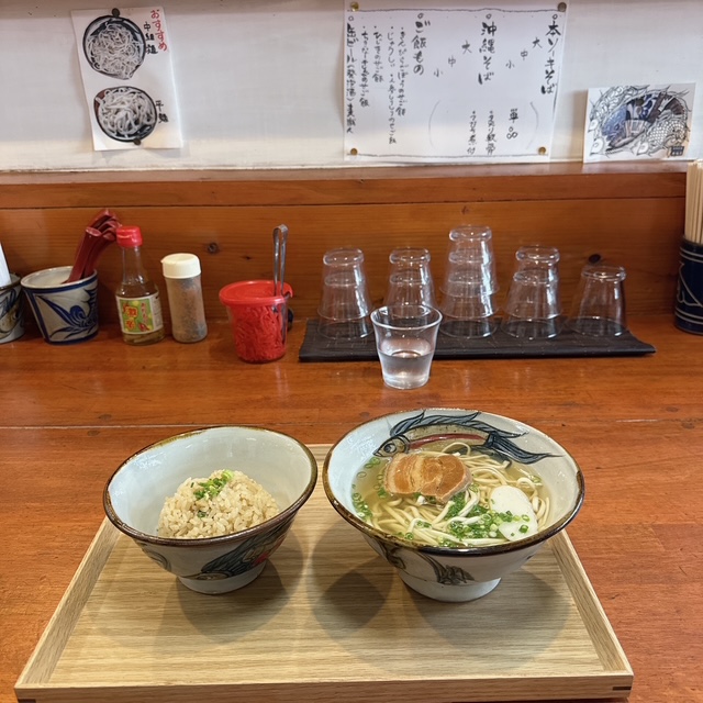 沖縄そば(小)とじゅーしぃにしました。