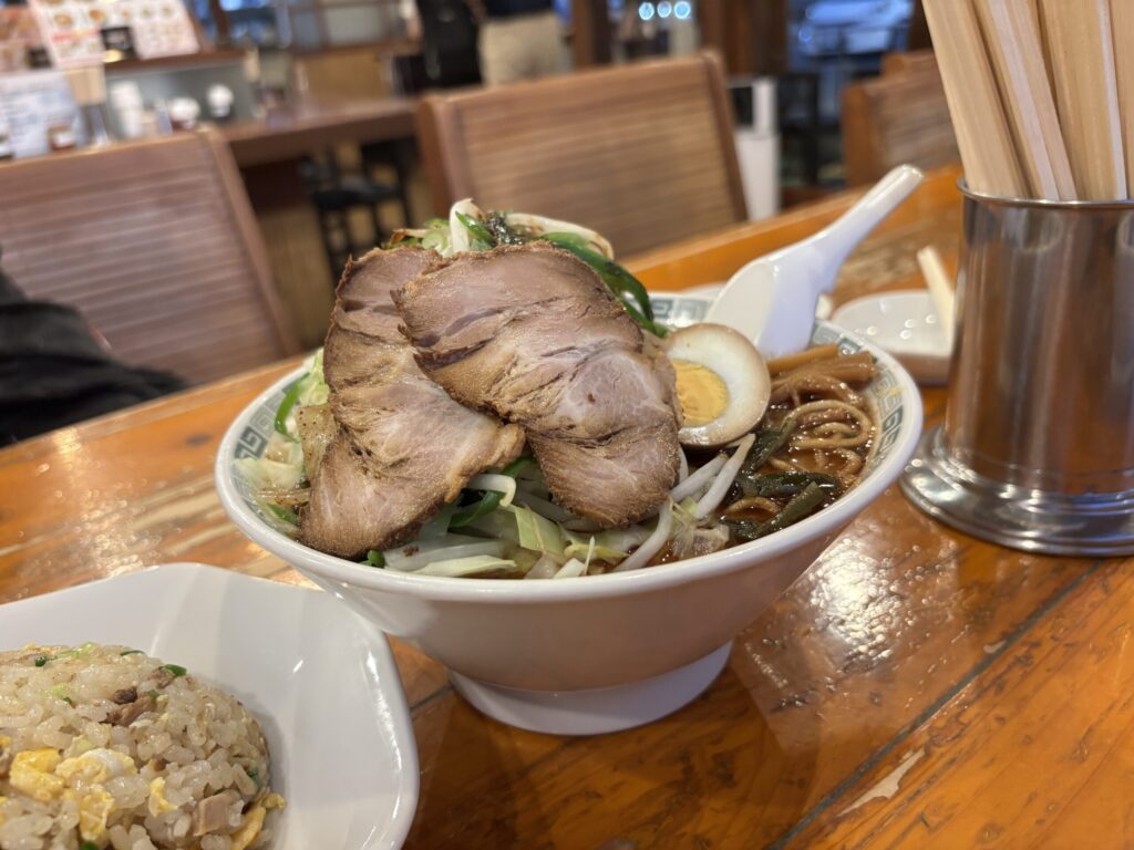 野菜もチャーシューもかなりエベレスト盛りなことがわかります。