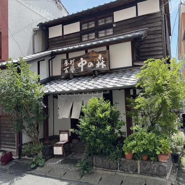 そばは水前寺の中の森。夏は混んでるから待ちますね。