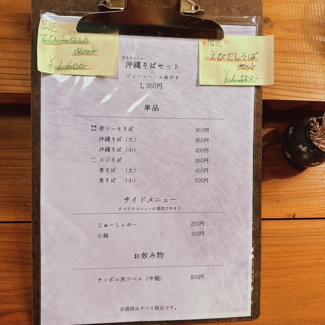 今日はランチのはしごをするので、沖縄そば(小)にします。800円