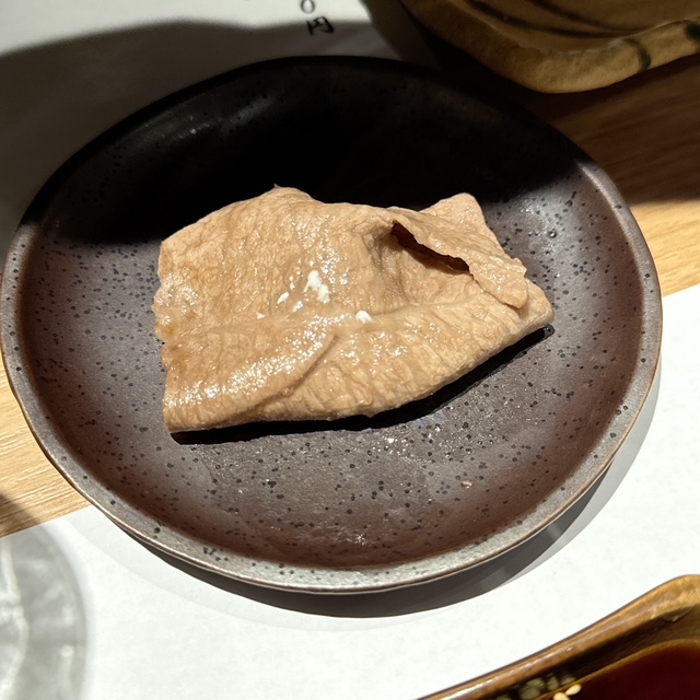 焼きすきはお店の人が焼いてくれます。フツーに自分で焼いちゃうと薄くて鉄板に張り付いてヘロヘロということになることが多いのですが。