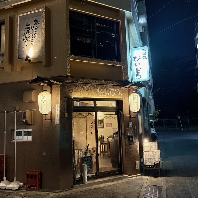 醸造酒場アジート。福岡の大名に姉妹店があるらしいです。以前は国内ワインも結構あったのですが、日本酒が強いお店になっているようです。私はここでは泡盛を