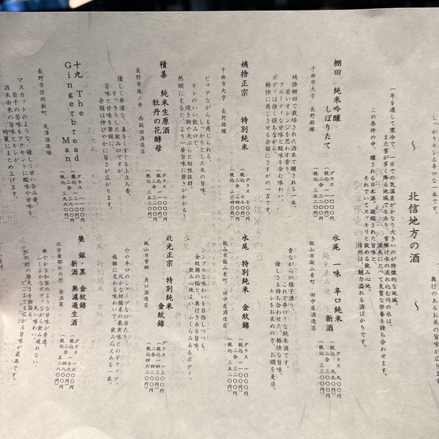 北信地方の酒として長野の日本酒。珍しくて嬉しい。