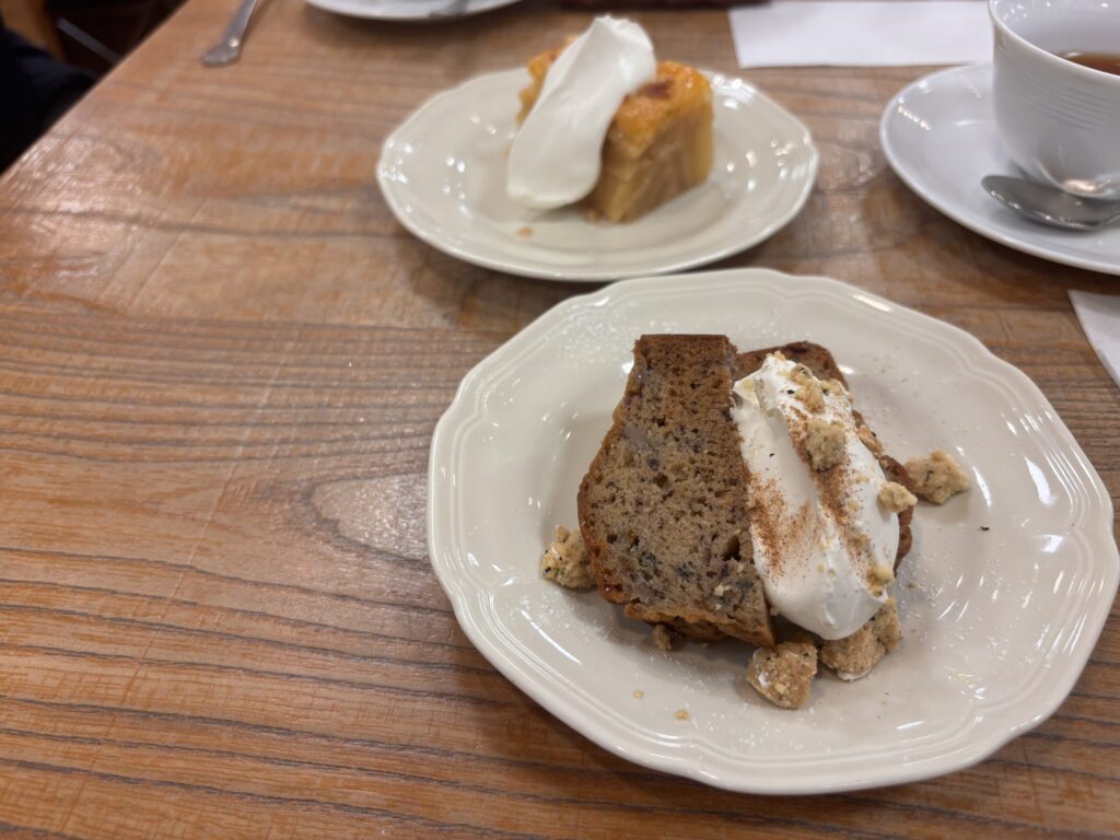 手前のはバナナクランブルケーキ。奥のはアップルパイ。