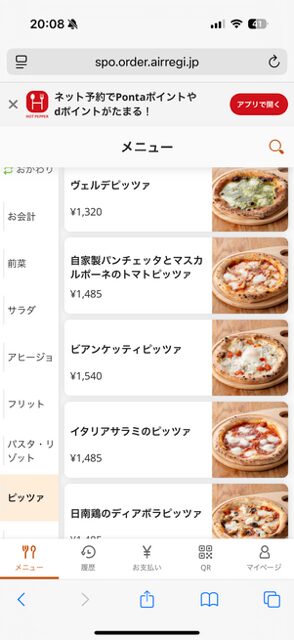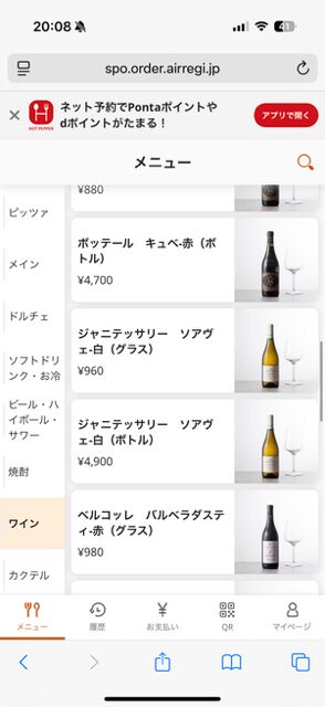 20時になっています。とりあえず乾いた喉をビールで潤し、スマホで注文するスタイルのようです。