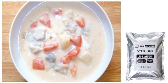「くるみ・小麦・そば・卵・乳・落花生・大豆」不使用、「香料・着色料」無添加の商品ブランド「A-Label」の業務用シチュールゥです。溶けやすい粉末状です。具材をかえていろいろな料理にご使用いただけます。