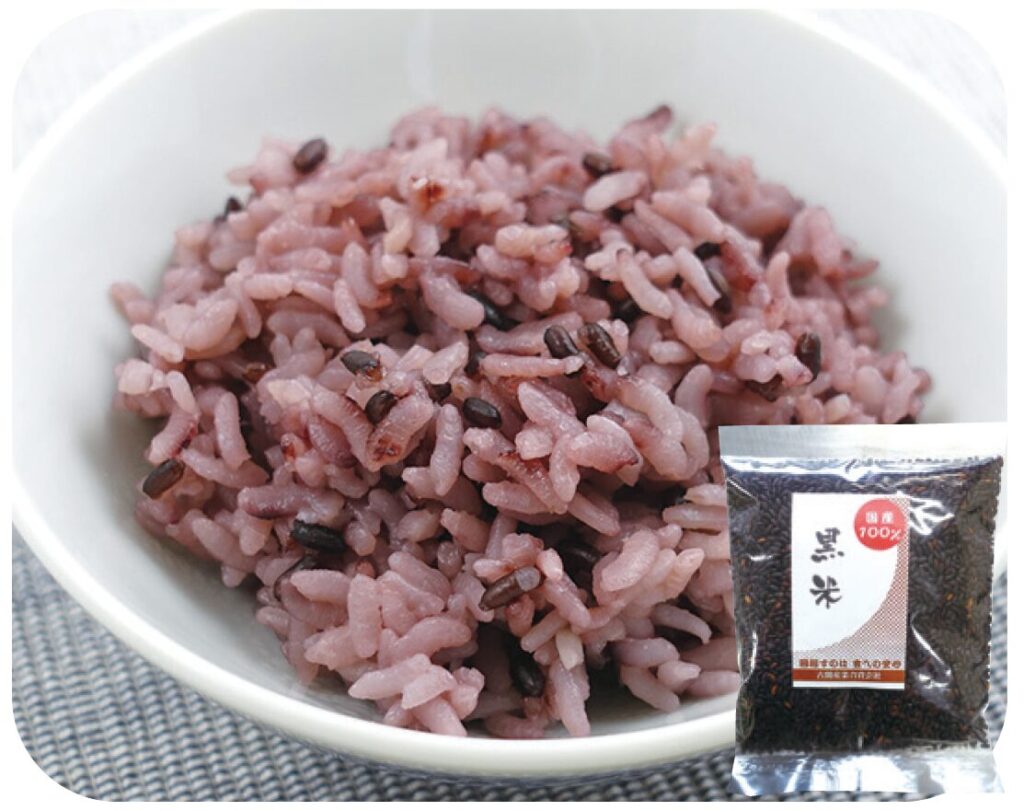 玄米のヌカの部分に紫黒色系色素を含んだ玄米。白米に混ぜて炊くと全体が鮮やかな紫色になります。