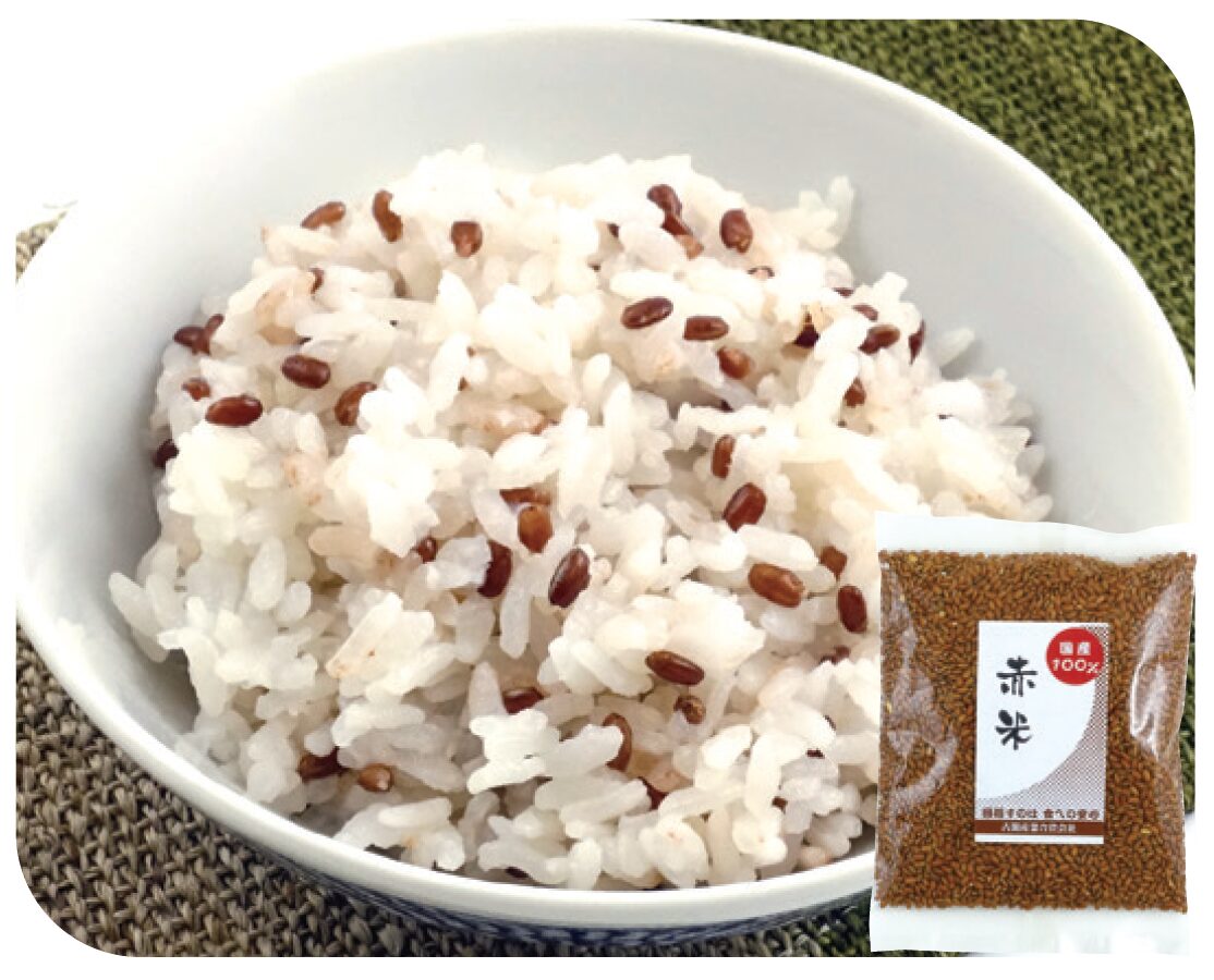 玄米のヌカの部分に赤色系色素(タンニン)を含んだ玄米。白米に比べタンパク質や各種のビタミンやミネラルが多く含まれています。