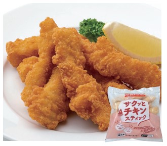 シンプルな味付けでソースやタレとも組み合わせ自由なチキンスティックです。鶏ムネ肉をスティック状にし、食べやすく仕上げました。スナック感覚でお楽しみいただけます。約24g/ 個