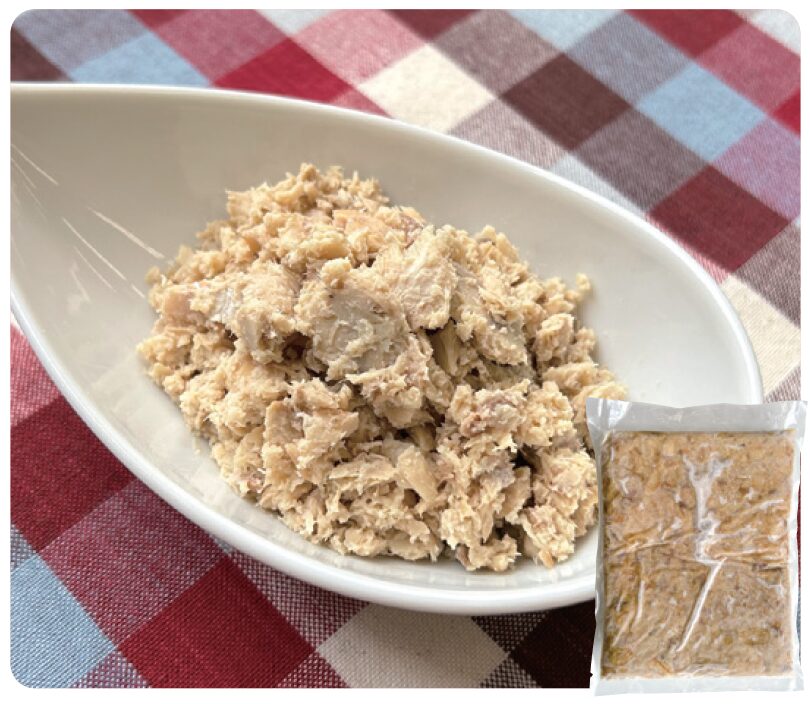 国産の白鮭を丸ごと使用し低塩でフレーク状に仕上げました。可食部を丸ごと使用する事により血合いに多く含まれている不足しがちな鉄分も摂取する事が可能です。