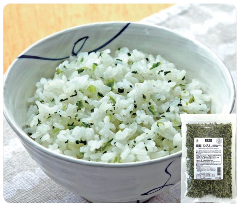 三島食品創業の地“ 広島” を代表する食材の“ 広島菜”。素材の良さを生かして、彩りよく仕上げました。「ひろし」の減塩タイプです。(ナトリウム25%減)。米150g に4-5g。