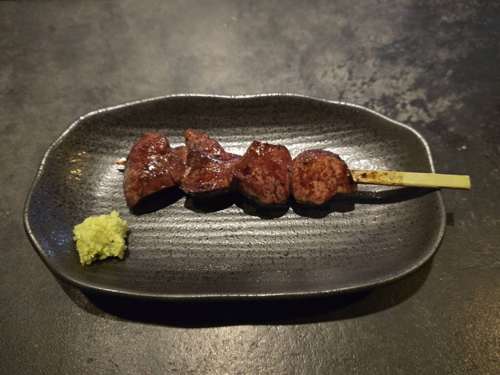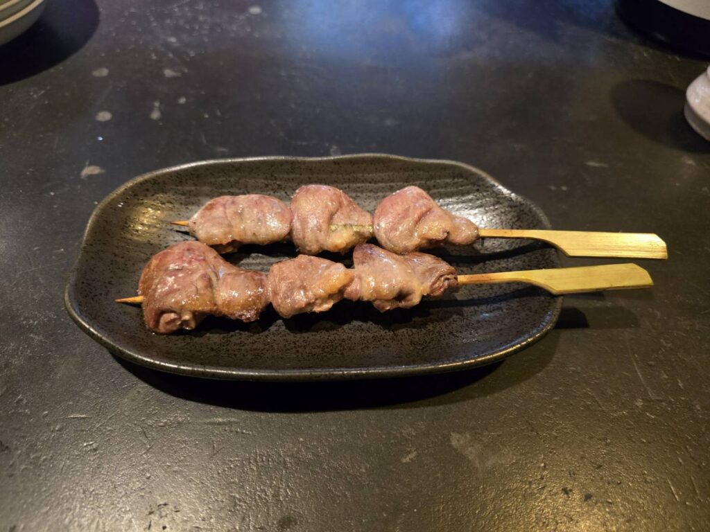 ハツと肝は、火が通っていながらもレア感のある絶妙な焼き加減。