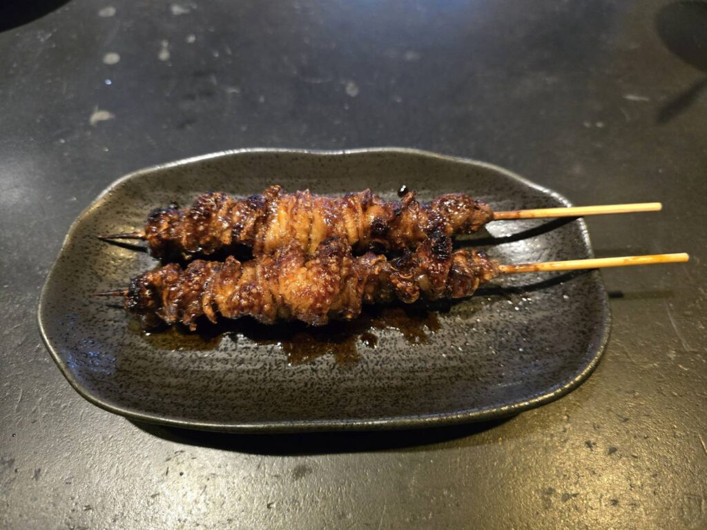 お次は焼鳥。皮、ハツ、肝をいただきました。
