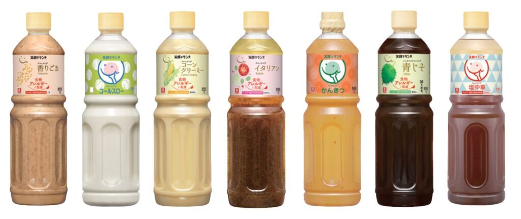 笑顔でランチドレッシング 香りごま・コールスロー・コーンクリーミー・イタリアン・かんきつ・青じそ・塩中華