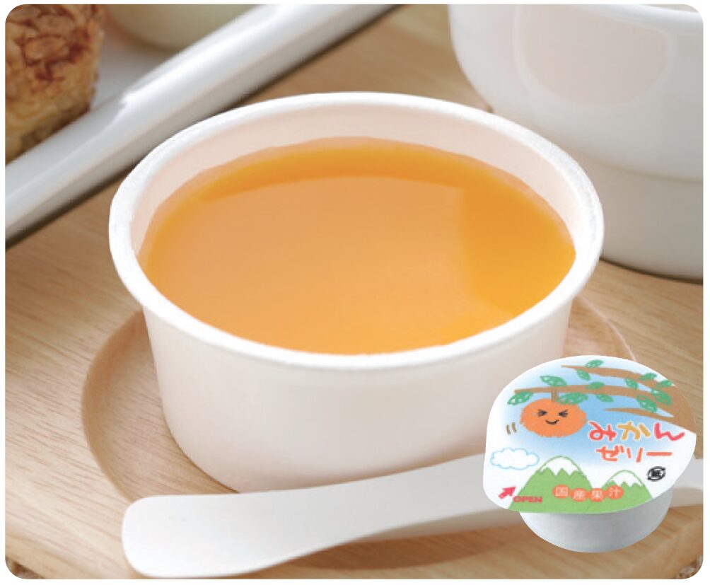 国産の温州みかん果汁を使用したゼリーです。素材の味を活かし子どもにも食べやすく仕上げました。鉄、食物繊維を含む商品です。1個当たり鉄分1.2mg、食物繊維1.4g