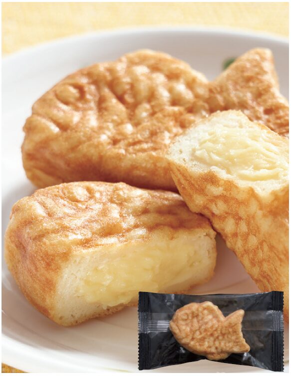 【チョコ】ココア味の生地の中に北海道生クリームを使用して作った、チョコレートクリームを入れた小さい魚の形のケーキです。不足しがちな鉄分を加えています。鉄分1.3mg/ 個【いちご】プレーンの生地の中に「とちおとめ」のいちご果汁で作ったいちごクリームを入れた小さい魚の形のケーキです。不足しがちな食物繊維を加えました。食物繊維2.2g/ 個
