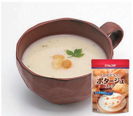 まろやかクリーミー。じゃがいもをベースに香味野菜の旨味をブレンド。パセリを加えて彩り豊かに、お湯に溶かすだけで手軽にお召し上がりになれます。再加熱するととろみが増します。