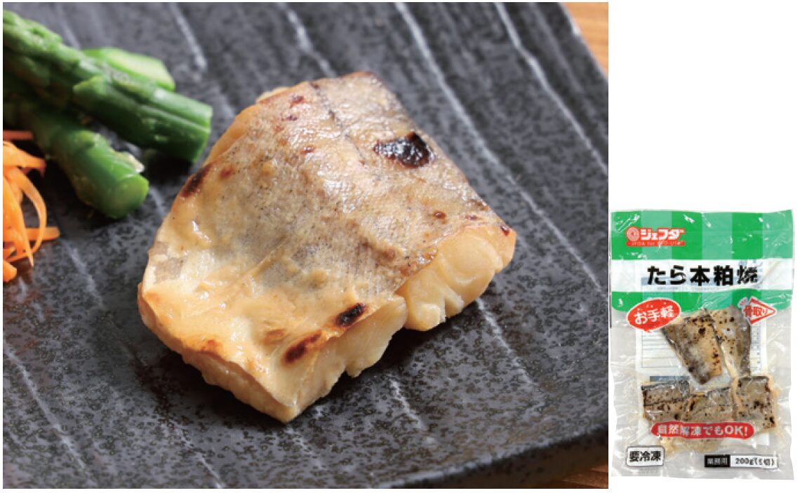 香り高く風味豊かな酒粕に、骨なしの助宗だらを漬け込み加熱蒸気で焼き上げました。食塩相当量0.8g/100g( 計算値) の商品です。