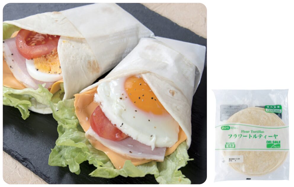 メキシコやアメリカで人気のうす手の生地シートは、いろいろな具材をつつんで、まいて、のせて、と食べ方自由。約 43g/ 枚、直径約 22.5cm