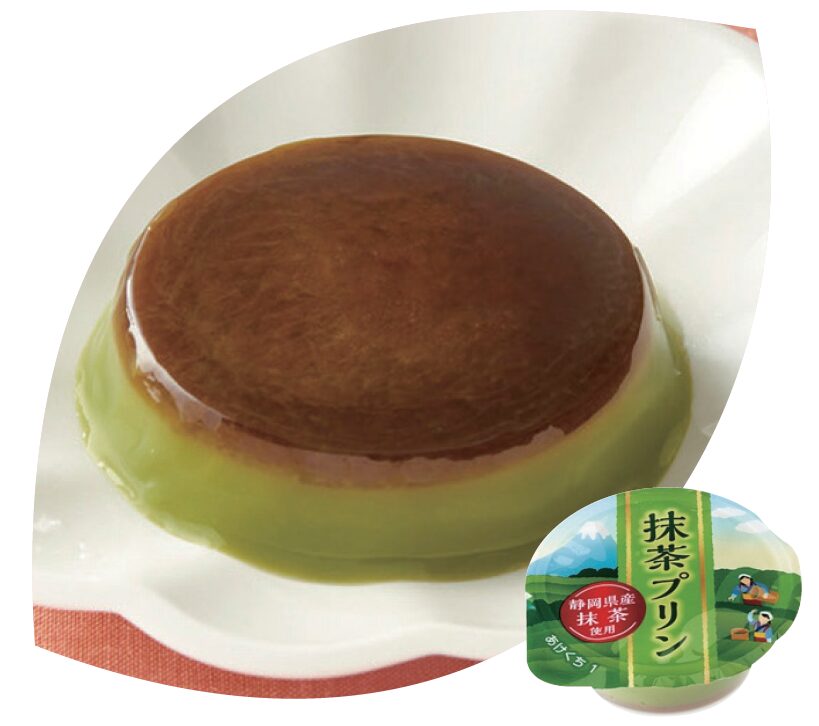 静岡県産抹茶とカラメルソースを使用し、2 層に仕立てた抹茶プリンです。不足しがちなカルシウムを加えました。10 個パック規格で、保管時の省スペース化にもお役立ちできます。プラ蓋、プラ容器。