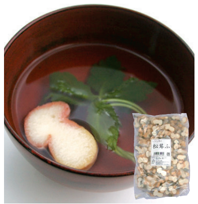 松茸を型どった香料入りの焼麸です。香りが加わり贅沢な風味をお召し上がりいただけます。水またはぬるま湯で水戻し後、水分を絞ってお使いください。30mmx18mmx8mm、 約 220-260枚入り