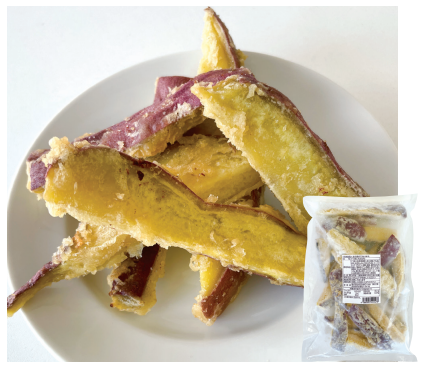 熊本県産紅はるかを使用した天ぷらです。既に揚げてありますので2度揚げする必要がありません。再加熱する際はレンジ、オーブン、トースター、加熱保温機、いずれも対応可能です。解凍後加熱せずそのままでも美味しく召し上がれます。